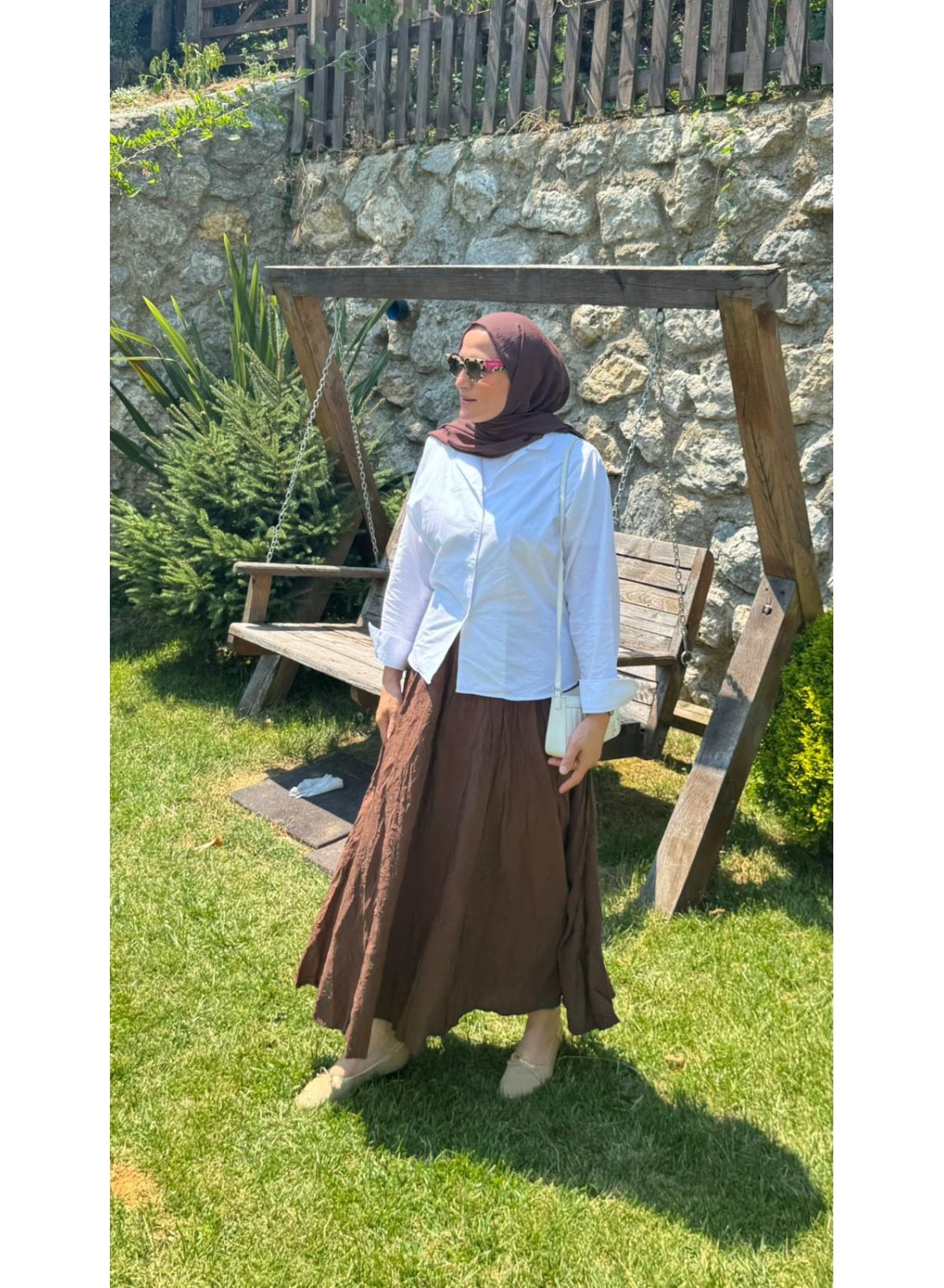 Bağcıklı Natural Keten Gömlek Kahverengi