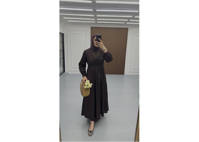 Pensli Pamuk Poplin Elbise Kahve