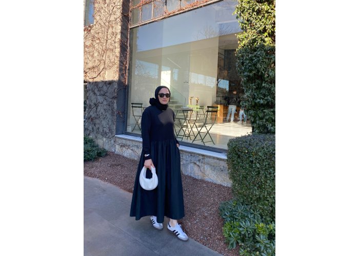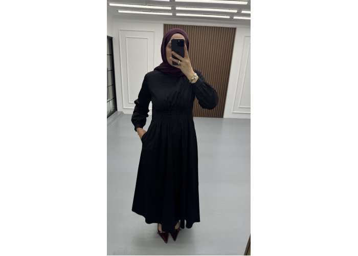 Pensli Pamuk Poplin Elbise Siyah