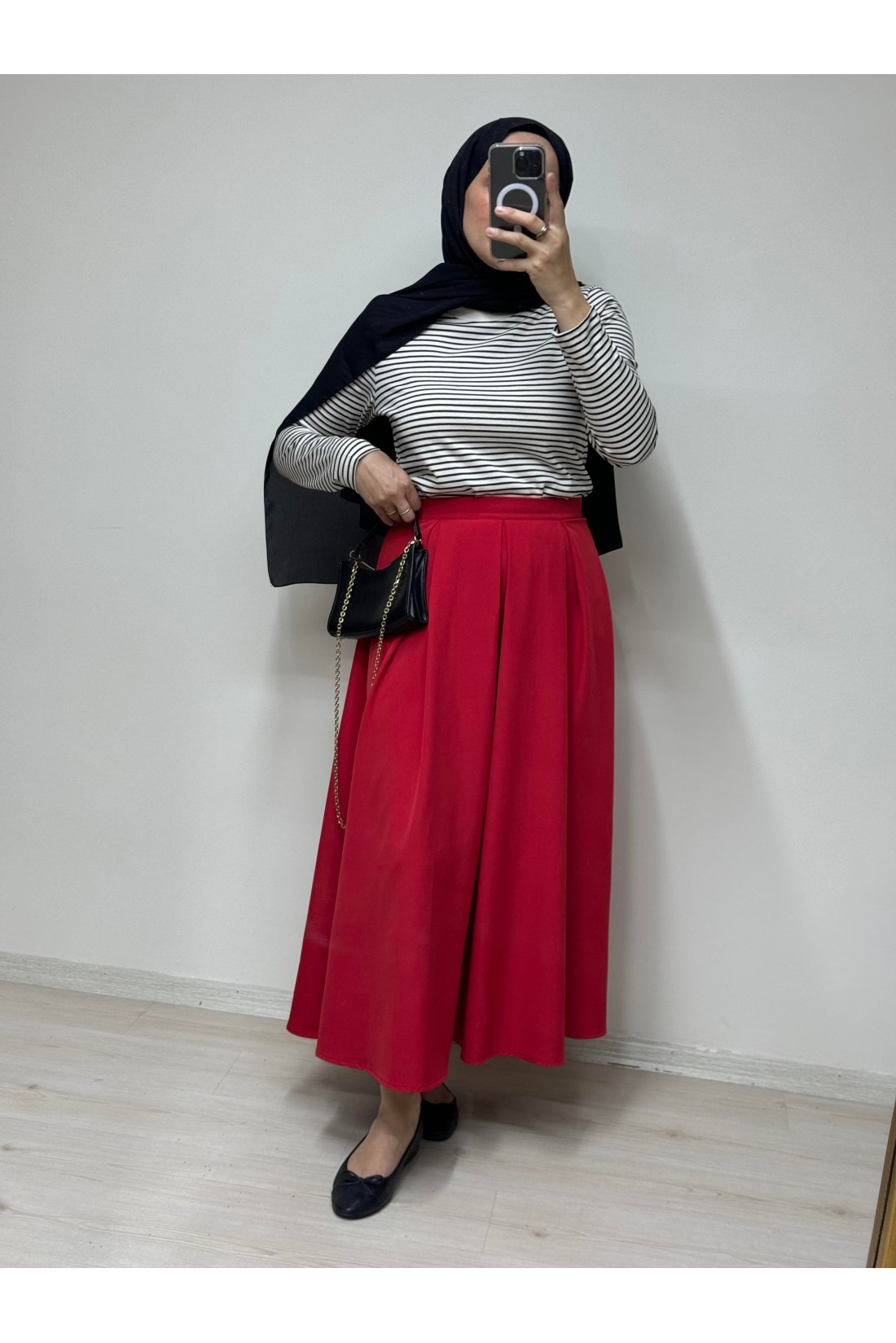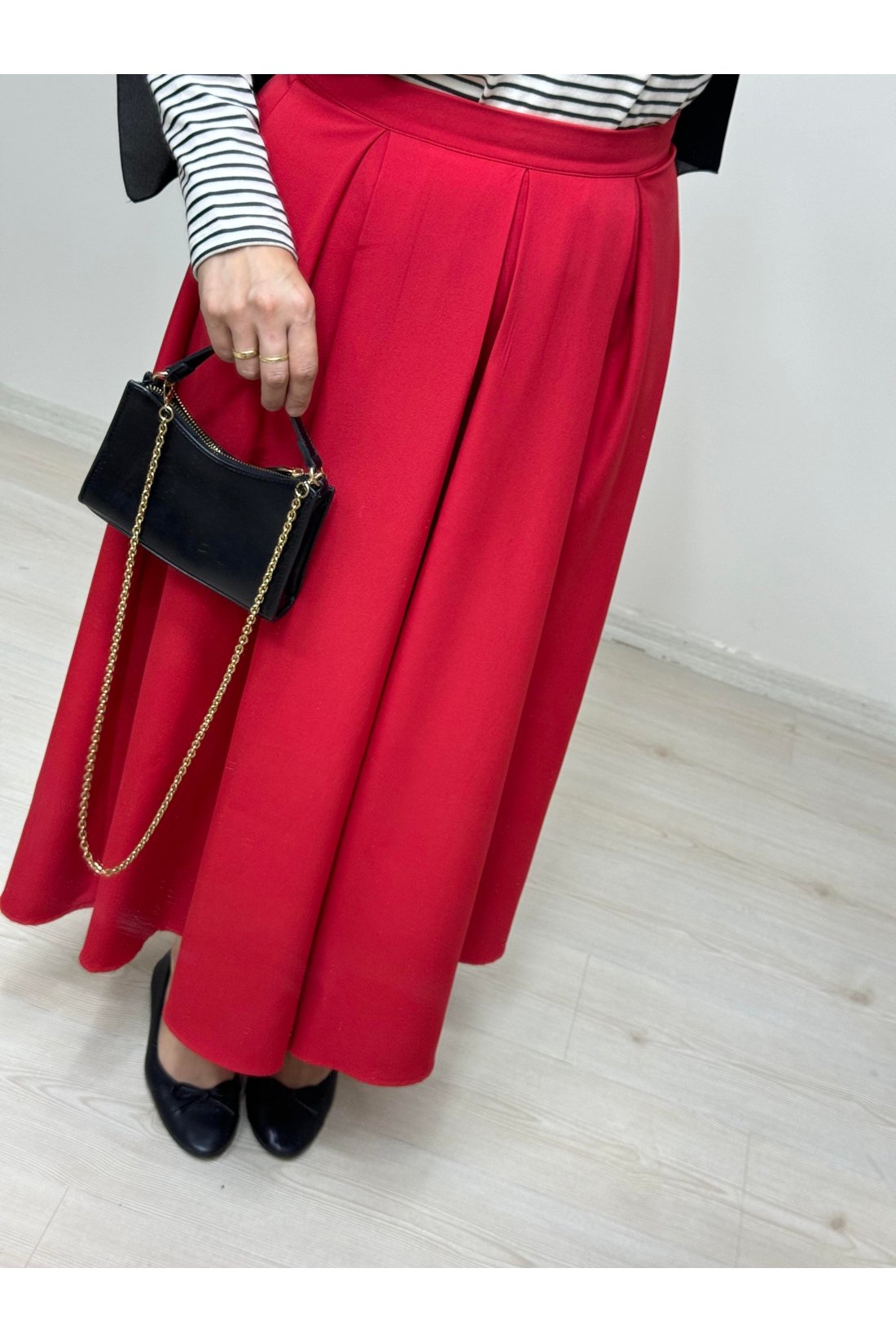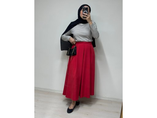 Kırmızı Pile Detaylı Kiloş Etek