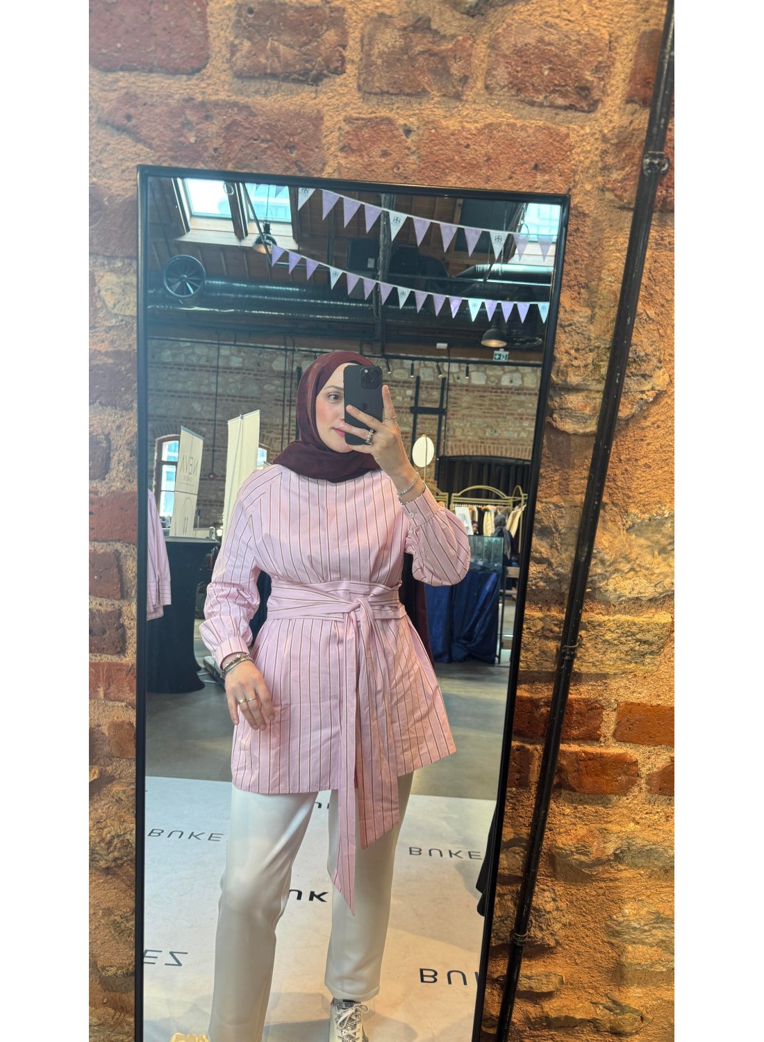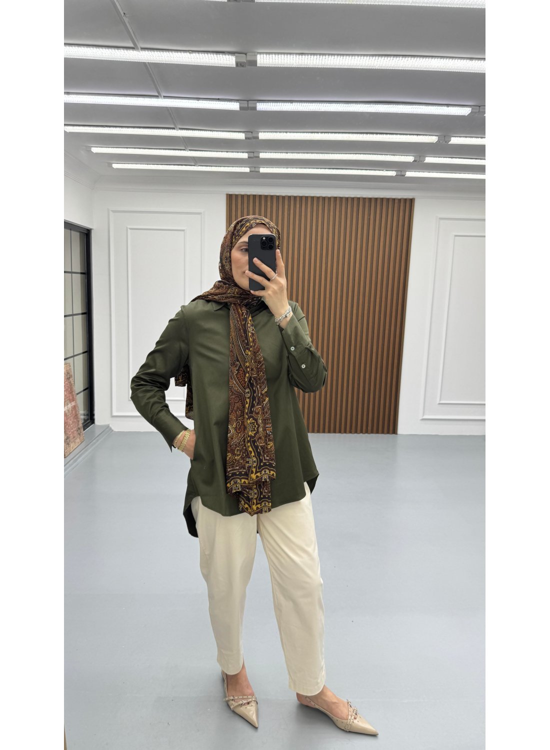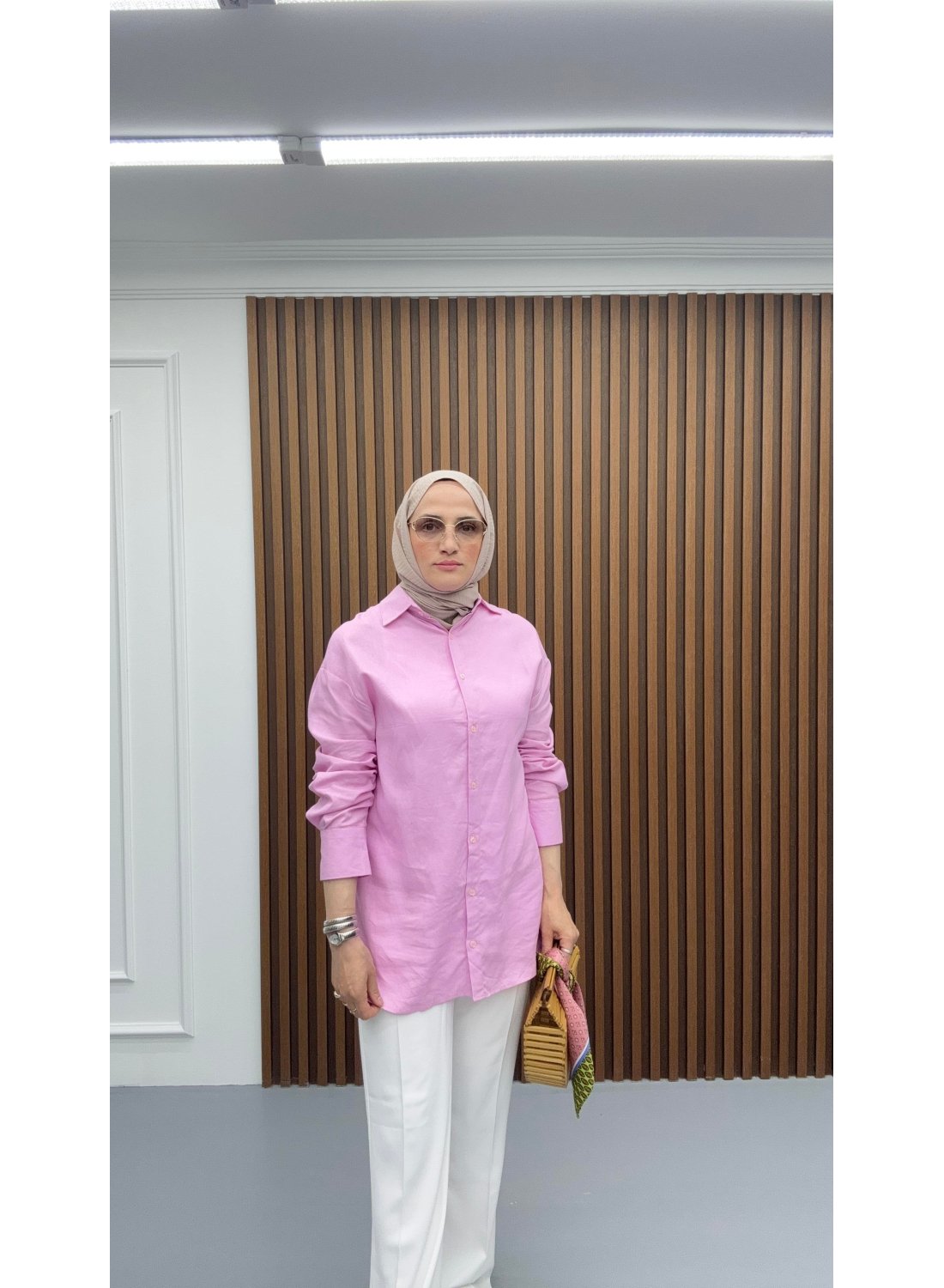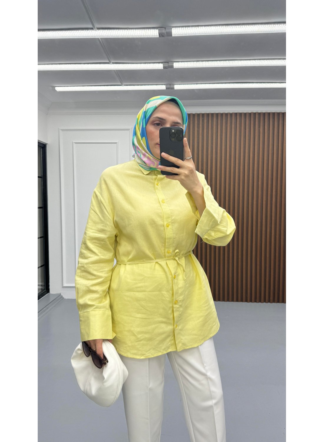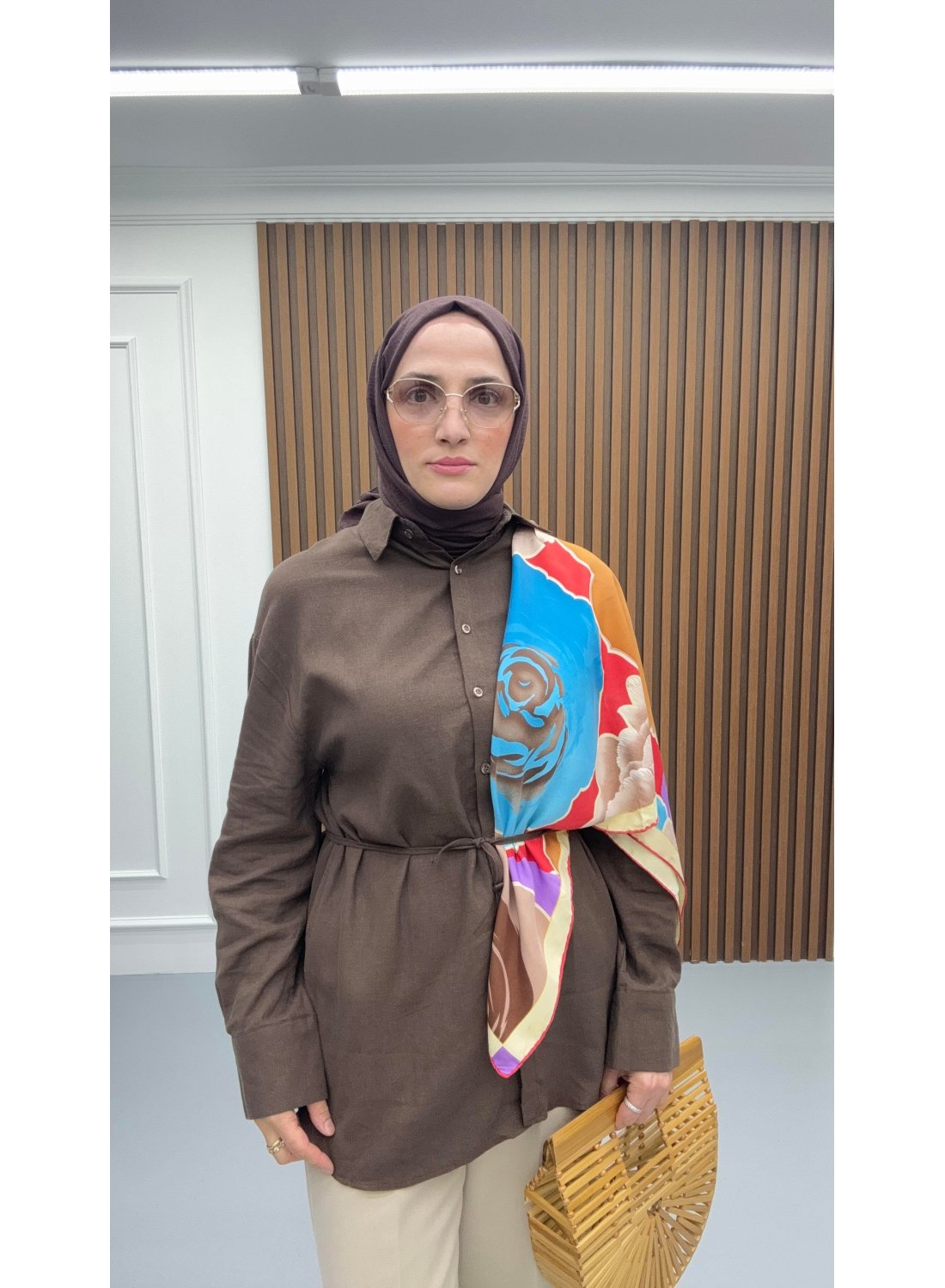 Bağcıklı Natural Keten Gömlek Kahverengi