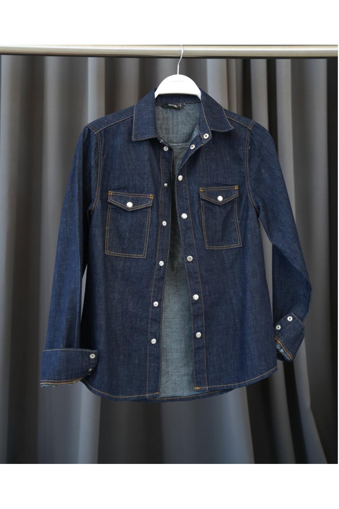Çıtçıt Düğmeli Çift Cepli Denim Gömlek