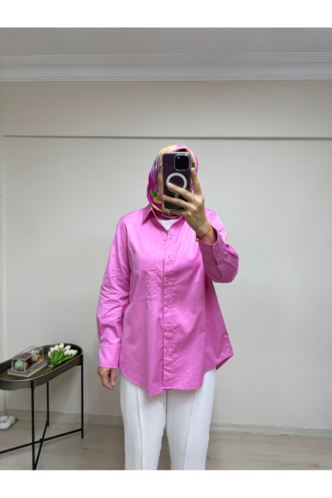 Cotton Oversize Gömlek Pembe